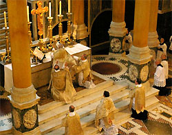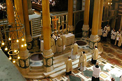 Gerade komme ich von dem Pontifikalamt zurück, das Dario Cardinal Hoyos von der Päpstlichen Kommission Ecclesia Dei zum Fest des hl. Basilius des Großen gefeiert hat. Es wird sicher alle freuen, daß die Kathedrale überfüllt war – schon 30 Minuten vor der Messe waren alle Sitzplätze belegt, und auch in den Seitenschiffen und der Vierung gab es nur noch Stehplätze. Viele der Gläubigen in der überfüllten Kathedrale waren jung, oder Familien mit Kindern. Ich selbst bin 24, und ich schätze, daß etwa die Hälfte der Anwesenden [insgesamt zwischen 1500 und 2000] in meiner Altersgruppe oder jünger waren.